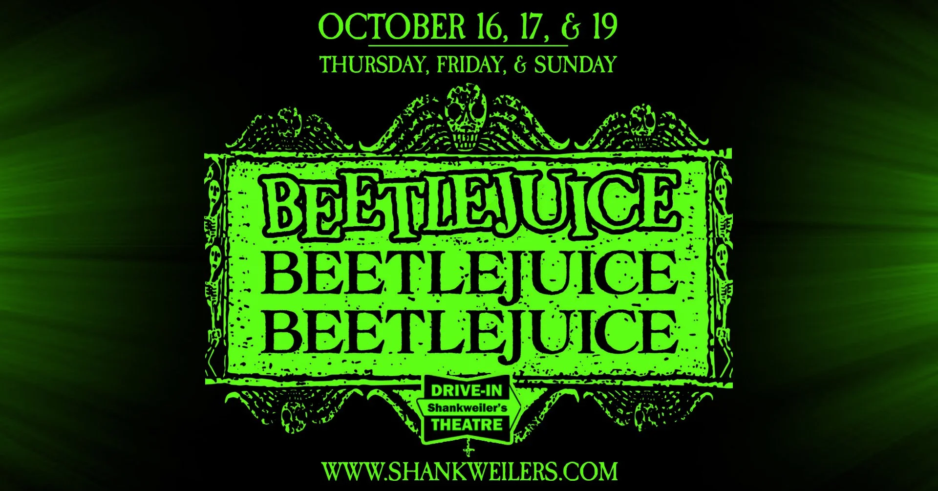 Beetlejuice Beetlejuice... BEETLEJUICE! Join us on October 16, 17, & 19 for some stellar spooky seasonal programming at Shankweiler's, featuring the ghost with the most! It's a BEETLEJUICE double feature! This long-requested pairing finally haunts our giant screen back-to-back.